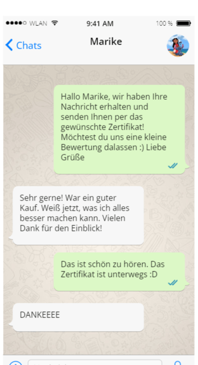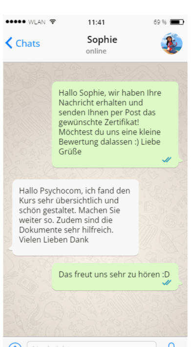 Du bekommst nach der Teilnahme ein Kurszertifikat zum "Psychocom - Mindset Kurs" als Nachweis, deiner neu erlernten Fähigkeiten.